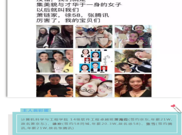 在校期间同宿舍的几名学生,在学业、生活、参加竞赛、参与项目等方面表现都很优秀,并且在2018年毕业时,全部签约京东、腾讯等优质企业,就业情况非常好。软件工程卓越班学生萧海霞九月份收到了极盛科技、金山wps、链家、京东等offer,最后签约京东;徐欢签约58同城;张雪签约腾讯�