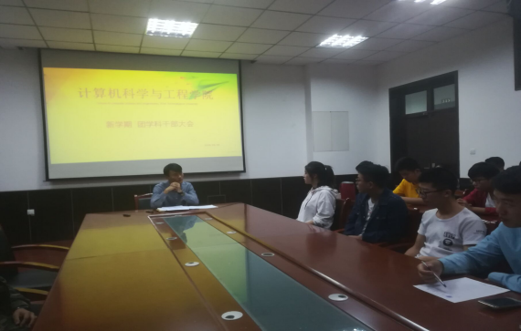 9�29日晚18:00,计算机科学与工程学院在�1�306召开了团学科干部大会,参加本次会议的有:计算机科学与工程学院团委书记于杰老师,计算机学院团委、学生会、科协所有部门的学生干部�