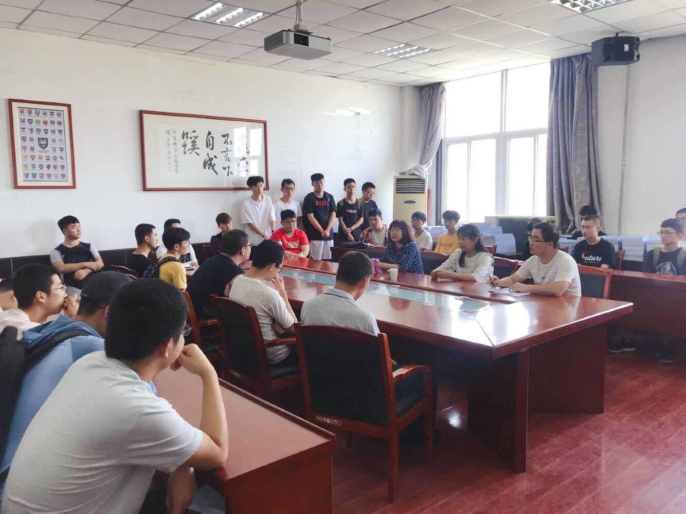 9�3日,计算机学院召开学籍处理学生座谈会。我院党委副书记李明芳�17级辅导员韩霄�18级辅导员冯倩、董元浩及受学籍处理学生参加了此次座谈会�