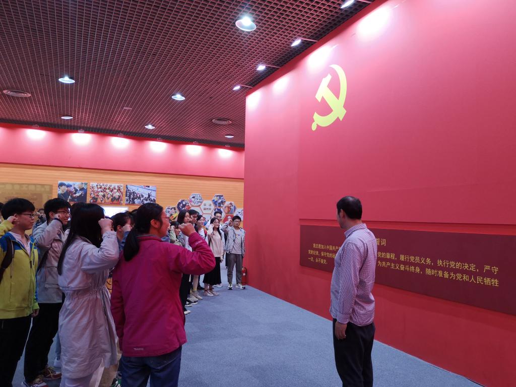 活动中,各党员同志不时驻足观看展品,感受不同时期的社会生活风貌,认真听取讲解,相互探讨、交流,并在吴宗原老师的带领下,面向鲜红的党旗,举起右拳,铿锵有力地宣读了入党誓词,重温入党初衷,再忆入党初心。参观结束后,感慨良多的各党员同志写下寄语,表达自己对祖国的美好祝福�
