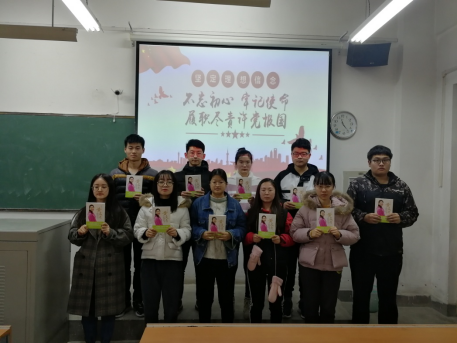 党员们观看了“时代楷�-黄文秀”事迹视频,学院为每位党员发放党建读物《黄文秀——用生命坚守初心使命的优秀青年共产党员》。杨老师希望广大学生党员学习黄文秀同志的奋斗精神,切实践行“不忘初心、牢记使命”, 做一个合格的共产党员。今后无论是走向平凡的工作岗位,还是走在继续求学深造的路途上,无论是在发达的城市,还是在偏僻的农村,不管在哪里,都以优秀共产党员的标准严格要求自己,争取在未来的工作中做一等学问、成社会栋梁,为民族复兴大业做出自己的贡献!