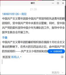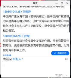此次团日活动,以QQ视频、腾讯会议等形式开展研讨交流,第二课堂管理中心在西工印迹发布了此次团日活动,各支部团支书从网站搜索中国共青团成立背景视频并且主持活动,介绍人物以及故事,支部成员一同观看。这次活动中各支部同学积极参加,了解了团史、党史和英雄故事,展开了系列讨论,重温了当年入团时的热血,回顾了英雄先烈英勇无畏的事迹�