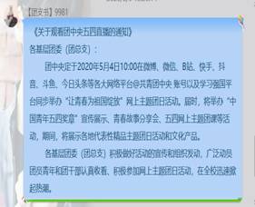 2020�5�4日,我院学生积极参与,在微博、微信、B站、快手、抖音、斗鱼、今日头条等各大网络平台@共青团中央账号以及学习强国平台,参加了这次网上主题团日活动�