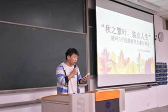 根据活动要求同学们上交以树叶为主材料的DIY作品,形式多样,有书签、画作、摆饰等等,最终选出十位优秀作品,于11�16日晚召开分享会,分享了优秀作品。视频结束后,为获奖同学颁发了获奖证书�