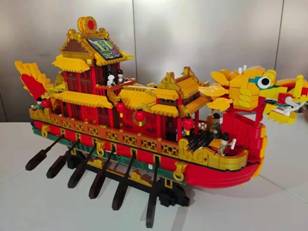 计算机学院易班干部团�5人,勠力同心,群策群力,历时3天,拼装模型和电子元器件�3000块,制作完成了长67厘米、宽34厘米、高32厘米的龙舟模型,模型在作品展上获得了同学们的交口称赞�