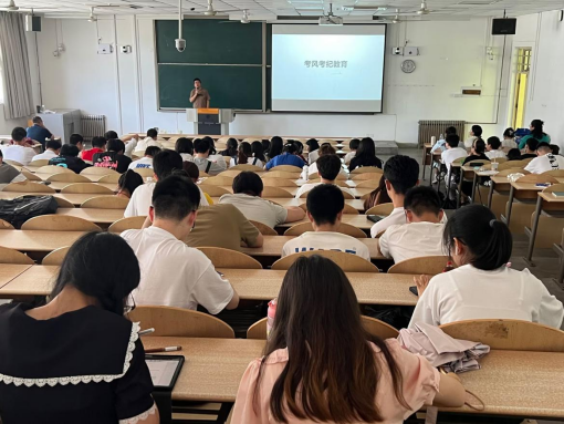 2023年6月9日下午于教一101召开本科生考风考纪主题教育班会。本次班会由辅导员解军强、呼延晓蓉、胡凯老师主持。