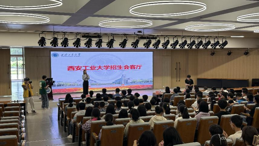 之后,同学们来到图书馆报告厅参加“西安工业大学招生会客厅”活动,大家一起观看我校招生宣传片“出发,一起向未来”。