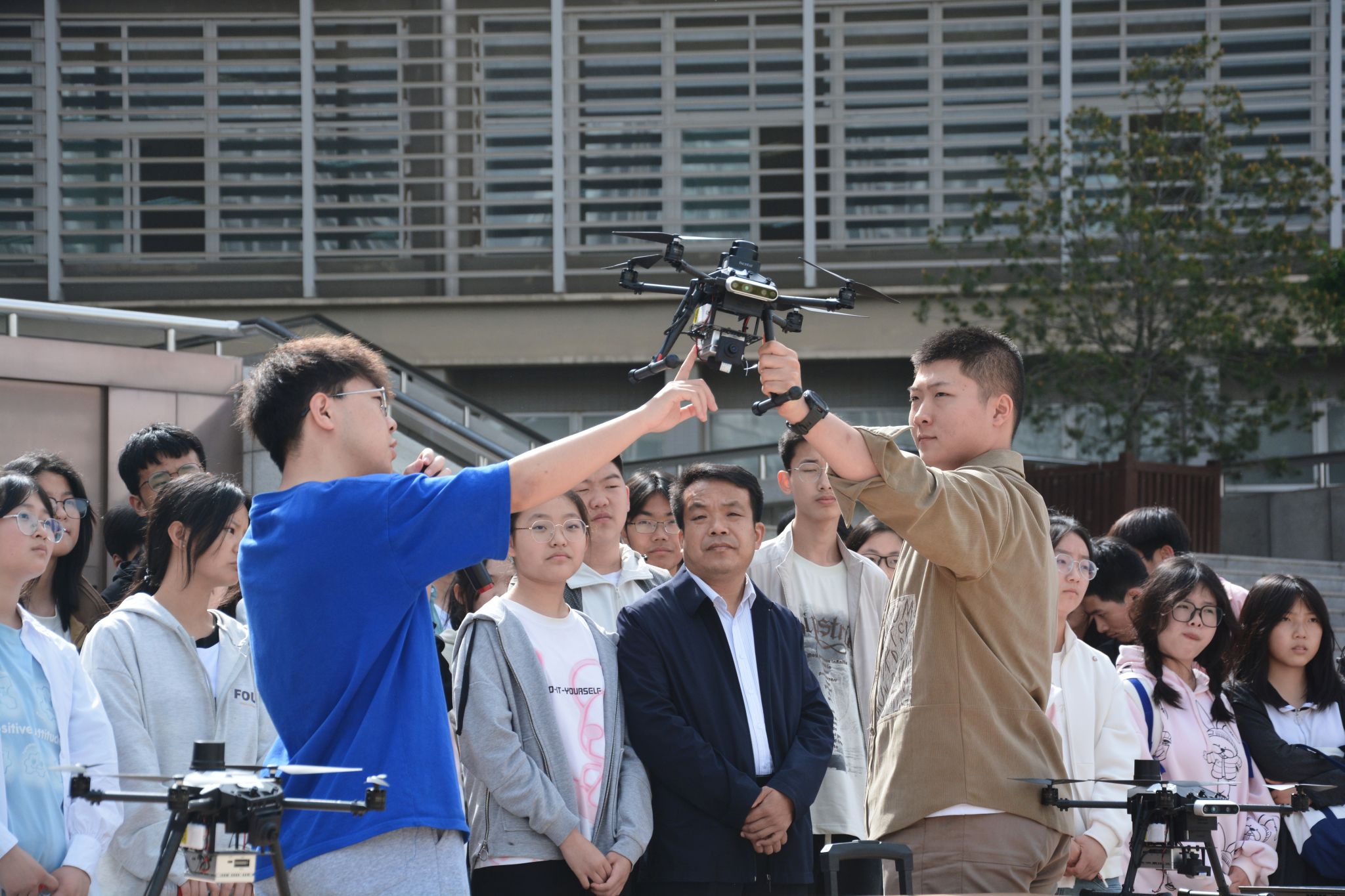 学生科研团队在图书馆门前为大家带来了一场精彩绝伦的无人机表演,充分体现了西安工业大学“生于兵工、长于兵工”的军工特色,激发了中学生们对大学知识的学习动力和对人工智能的浓厚兴趣。