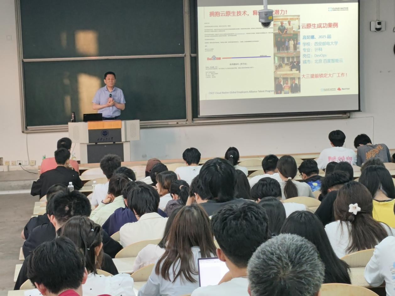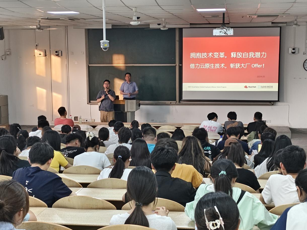 在教1-103举办“拥抱技术革新,释放自我潜力”云原生技术宣讲会,近300名学子参加本次活动。