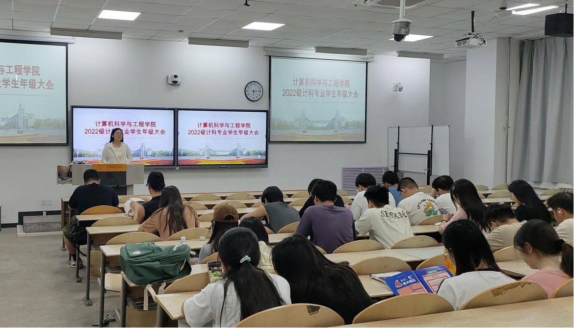 2022级计算机科学与技术专业学生年级大会于5月28日召开,大会由辅导员赵雨柔主持,22级计科专业全体学生参会。