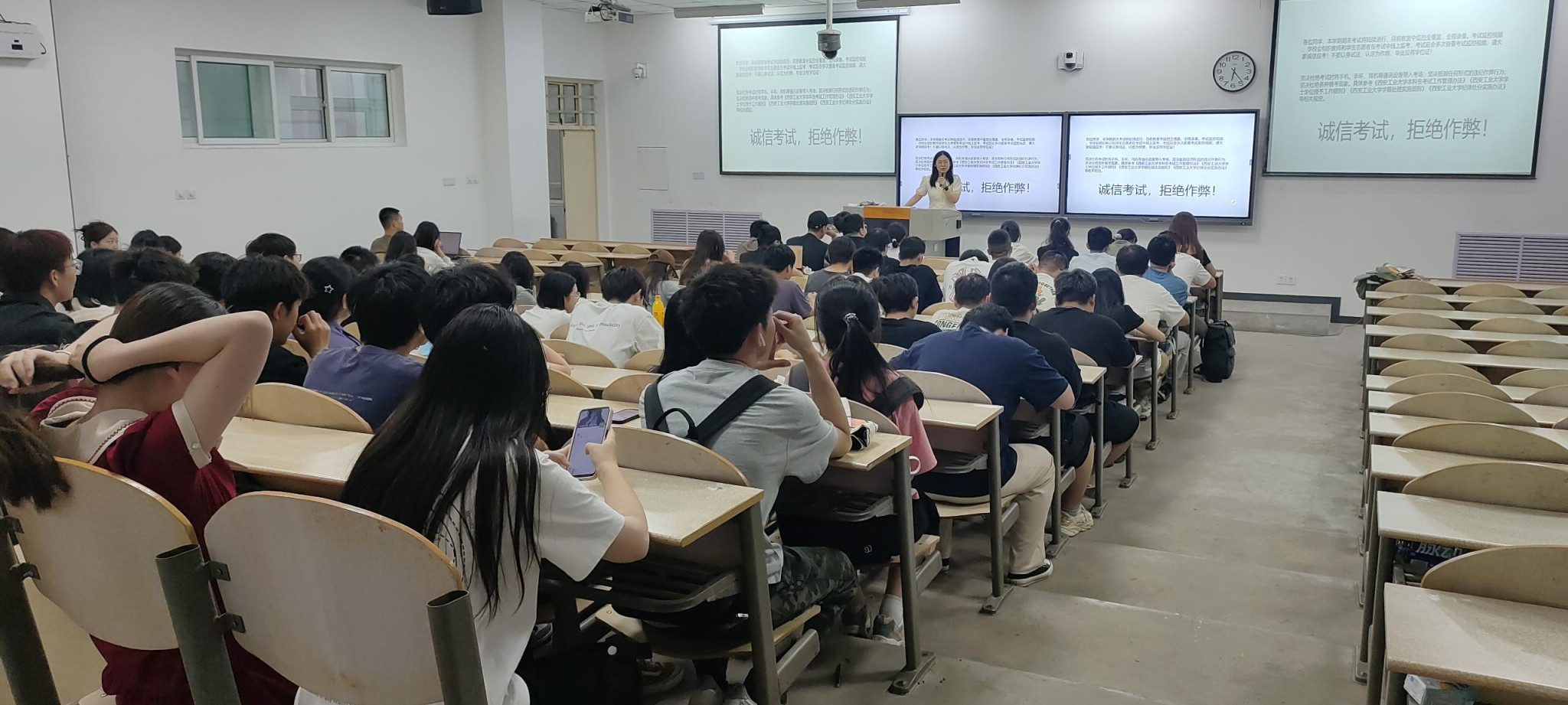 大二、大三年级辅导员以学校近年来的考试违纪处分案例为例,以考试中的失信现象和大学生考试的违纪心理进行分析,对考试作弊的严重后果和影响进行了详细全面的说明,引导学生自觉抵制违纪作弊行为。