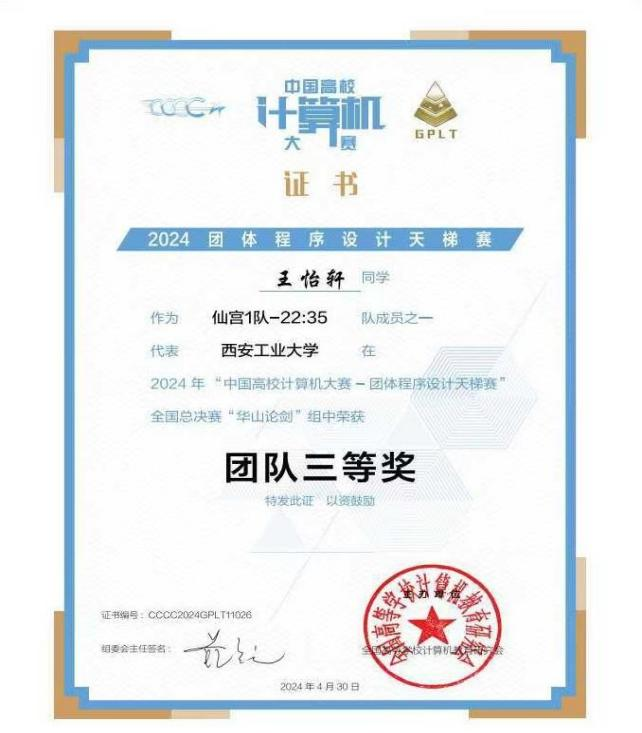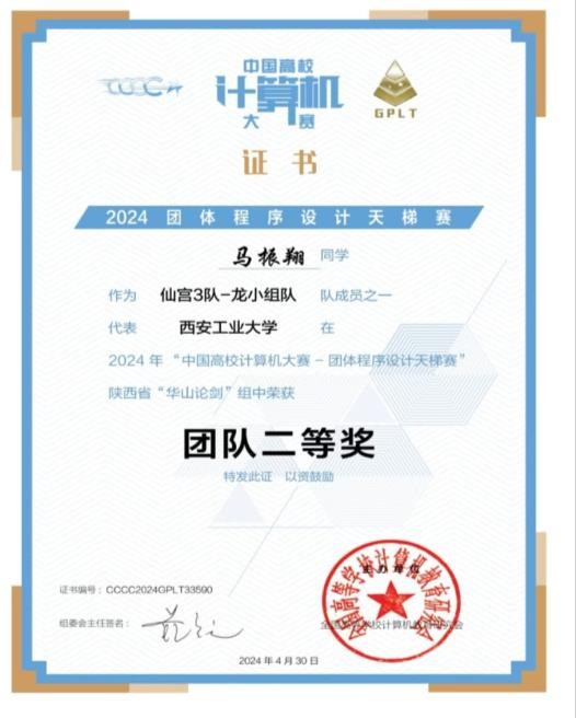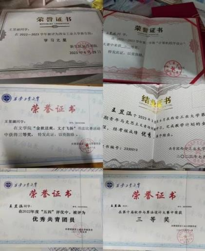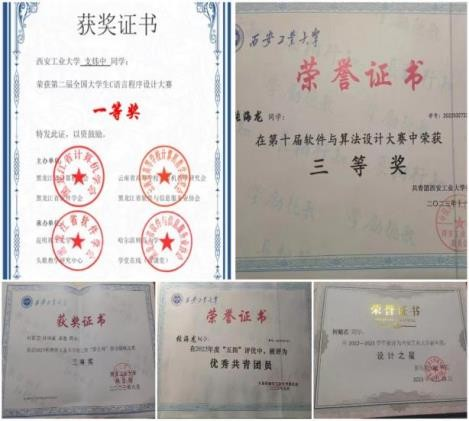 天梯赛,蓝桥杯大赛均获奖 10 余项证书如下:
