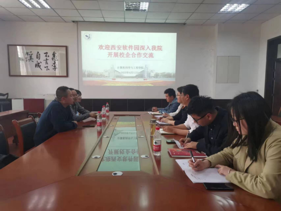 为落实我校“访企拓岗”专项行动、进一步加强校企在人才培养、产教融合、平台共建等方面的合作,加快促进毕业生实现顺利就业,4月11日下午3点,西安软件园人才服务与产学合作负责人蔡鹏、尚观科技总经理赵飞及四叶草校招人事经理马瑞娟一行到nba在线
