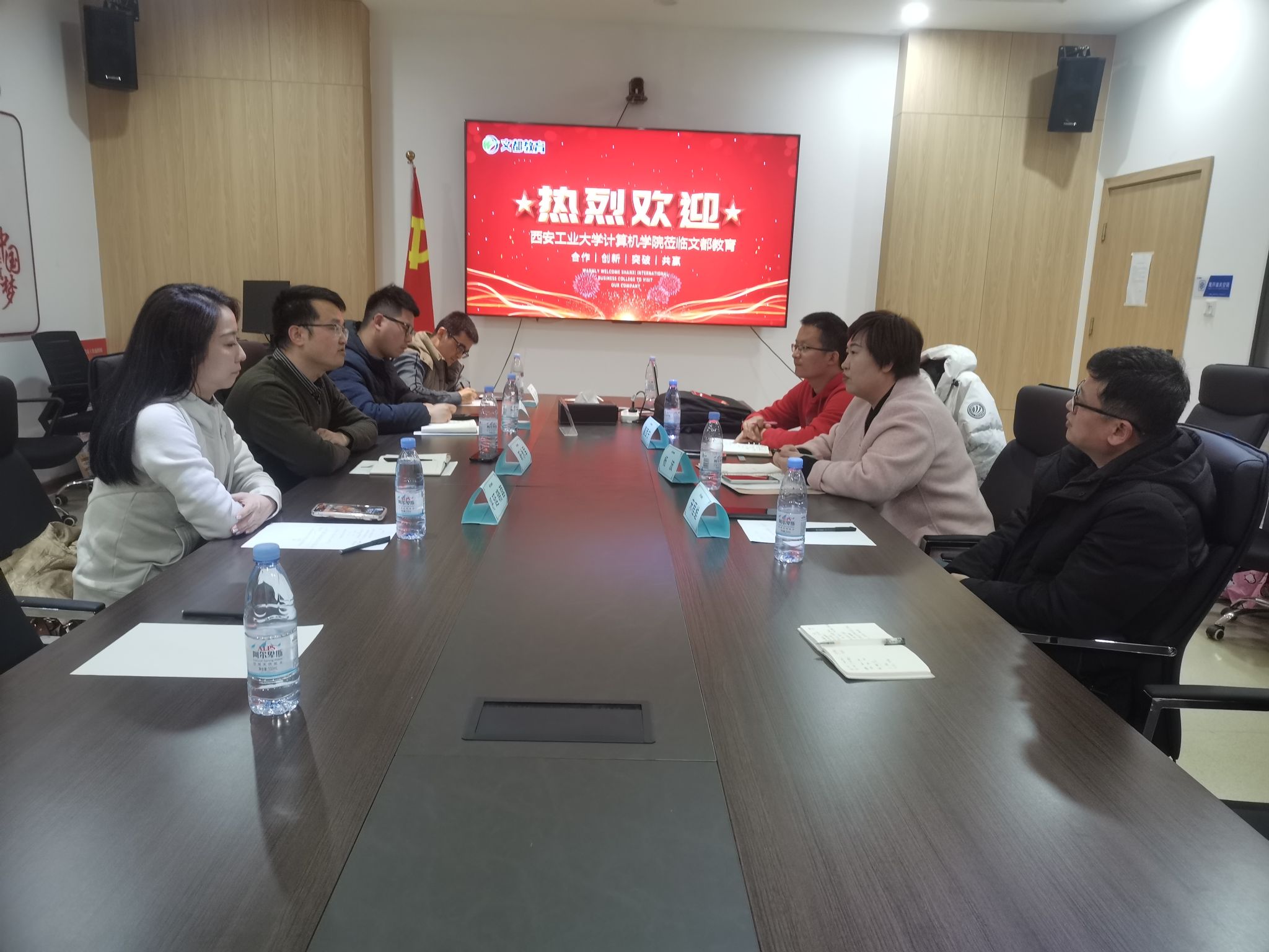 党委副书记靳永军,辅导员孙君、呼延晓蓉、胡凯等一行人共同前往文都教育集团小寨华旗总部进行参观交流。文都教育市场营销部负责人杨波、文都教育北郊区域校长夏西宁、文都教育未央校区校长宋程维等相关负责人接待来访。