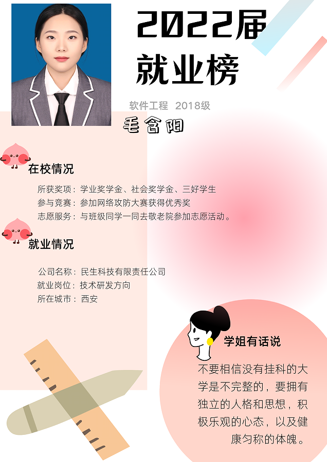 2022届就业榜|毛含阳技术研发岗