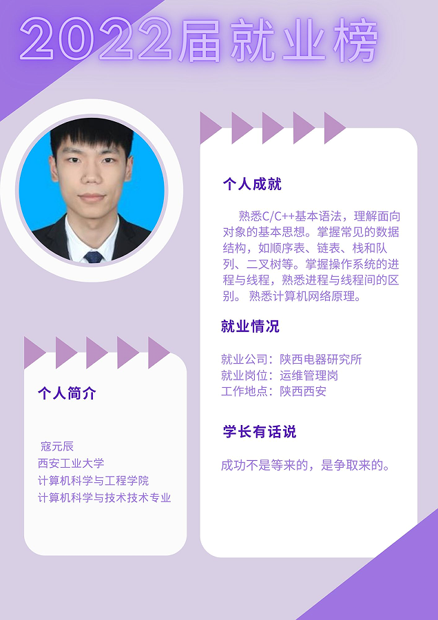 2022届就业榜|寇元辰运维管理岗