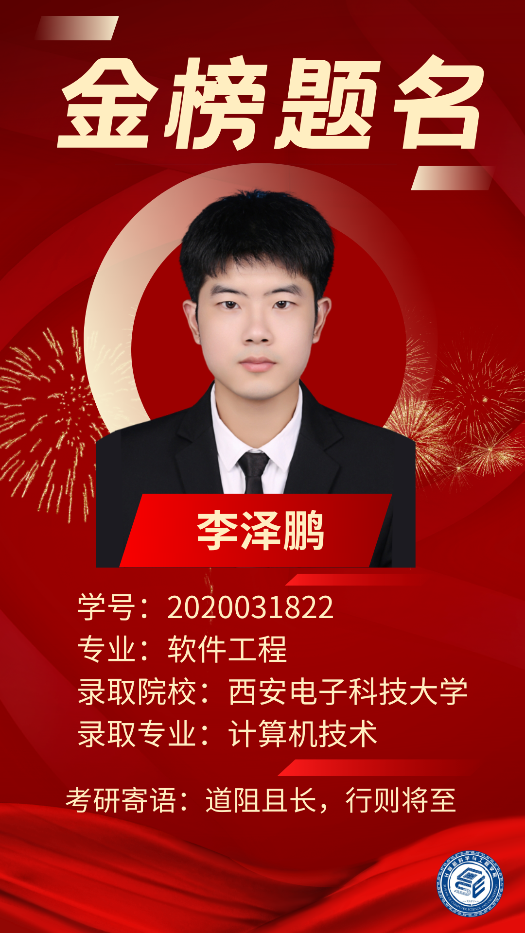 2024届升学榜|李泽鹏-西安电子科技大学