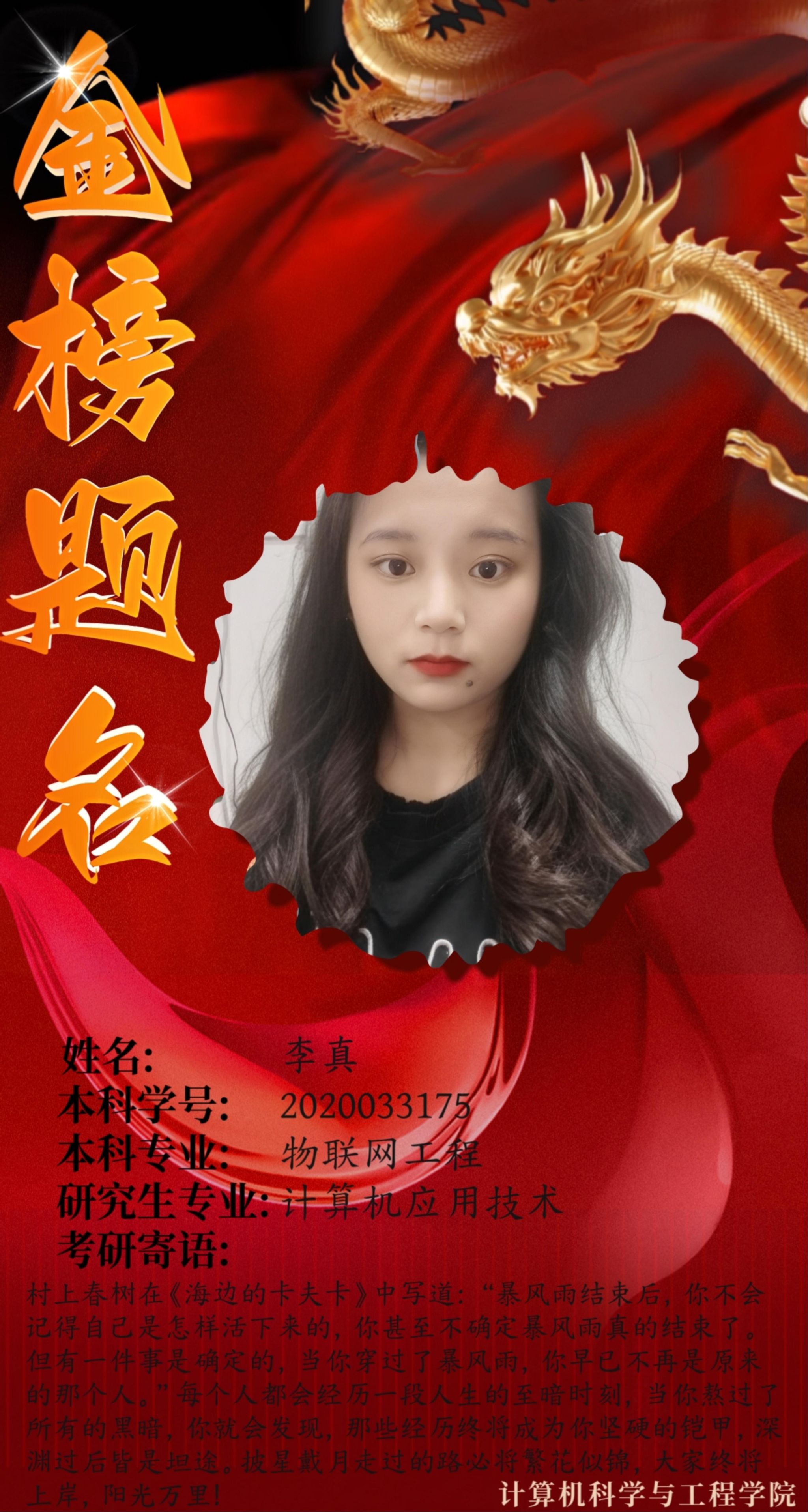 2024届升学榜|李真 -西安工业大学