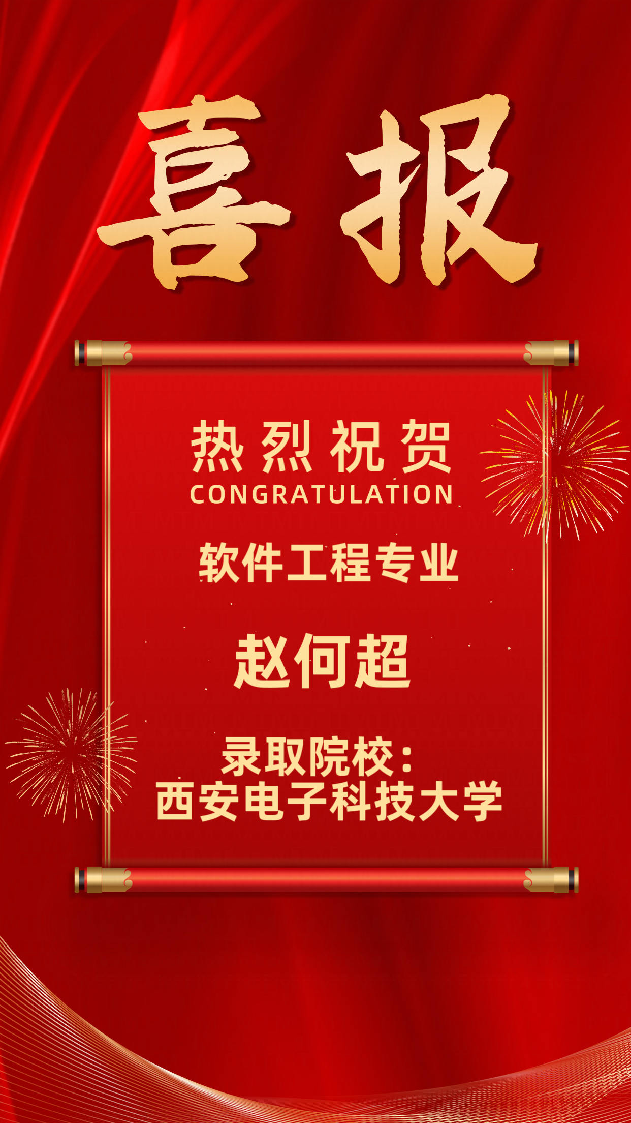 2025届升学榜|赵何超 -西安电子科技大学