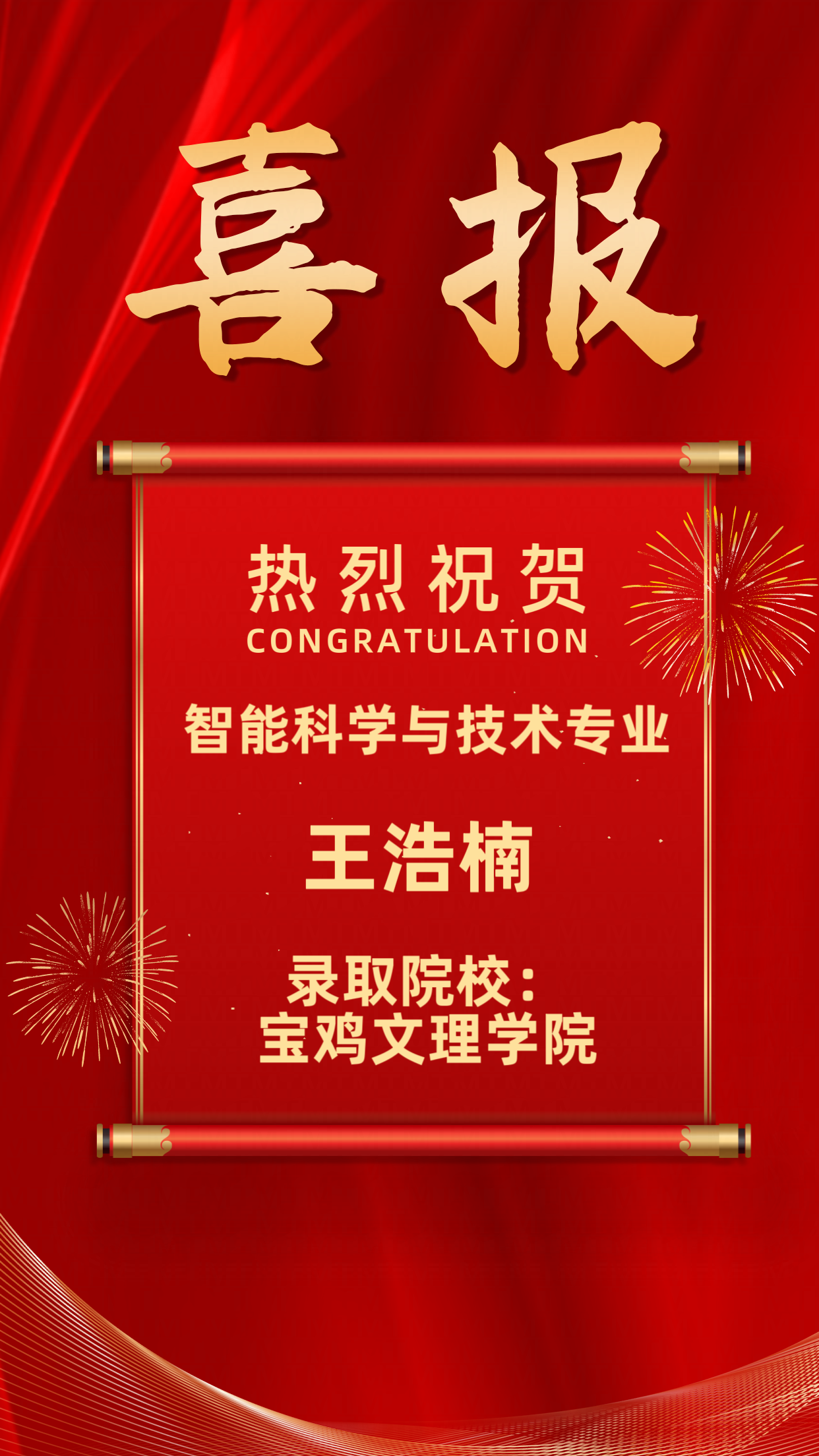 2025届升学榜|王浩楠 -宝鸡文理nba在线