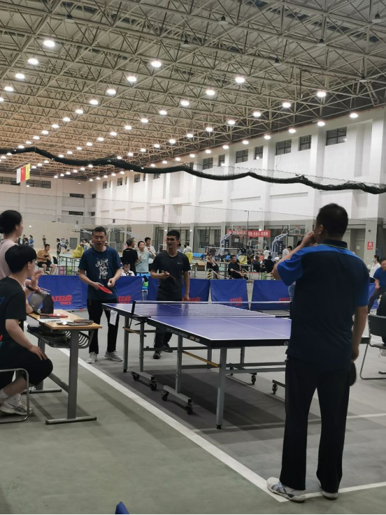 2022年5月25日晚上,nba在线 教职工积极参加学校组织的乒乓球比赛,展现教工风采.