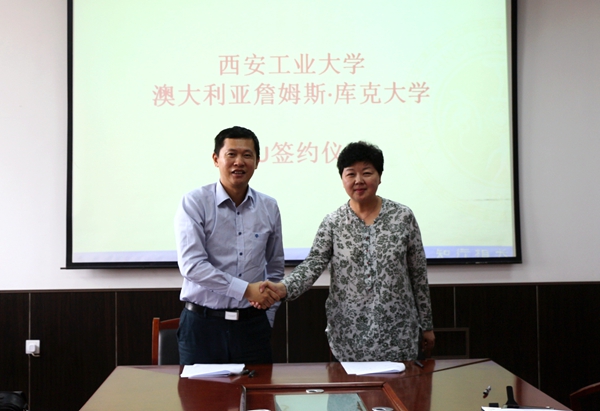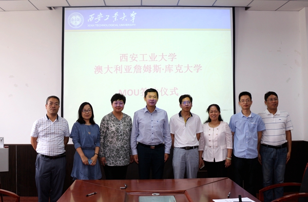 5月22日上午,西安工业大学与澳大利亚詹姆斯·库克大学MOU签字仪式在工1-306举行。詹姆斯库克大学向维教授;西安工业大学对外交流合作处处长薛虹、副处长张邈、nba在线
