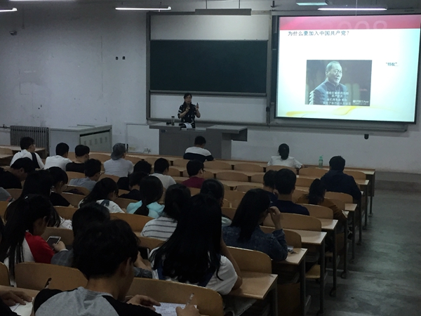 我院本学期党课第一讲主讲人为姚敏茹。主题为《中国共产党的性质》