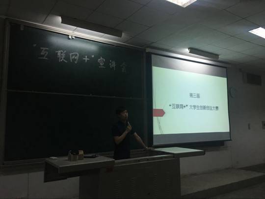 会议由辅导员刘薇老师主持,“互联网+”大赛总负责徐飞老师在会议上做了发言,他在会议上对“互联网+”大赛进行了解读,详细介绍了“互联网+”大赛的背景,一些互联网创业公司的盈利模式及我校对“互联网+”大赛的组织形式和安排。