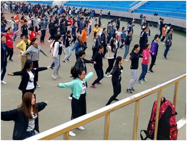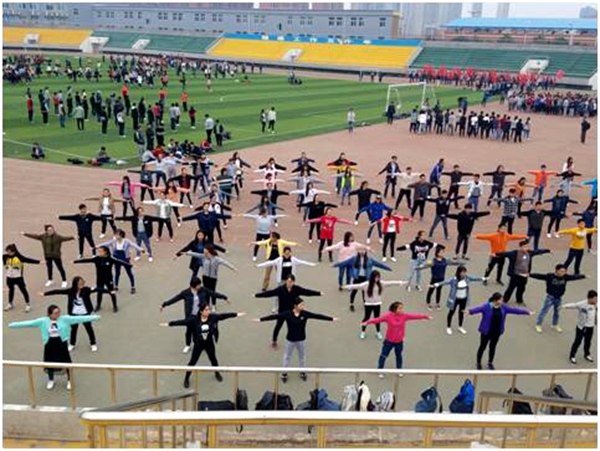 为更好的配合学校“阳光体育文化节”系列活动,充分展现我院大学生的活力,我院学生于4月11日下午在学校田径场进行了广播体操方阵训练。