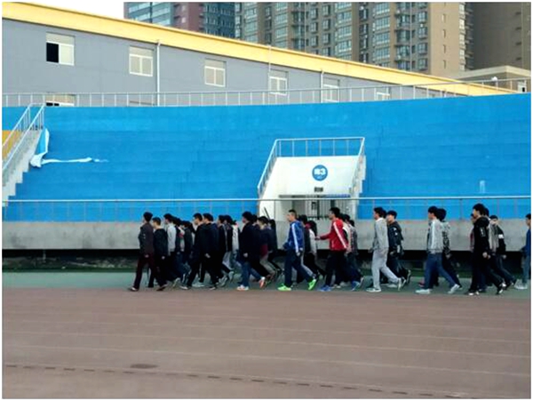 12—15班同学聚集在绿茵场上,在学生会的帮助下拉开了方阵训练的序幕,为即将召开的校运动会备战演习。