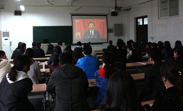 党委积极组织学生和教师党员在工1-508观看党的十九大开幕式,聆听习近平总书记代表党的十八届中央委员会做的报告。nba在线