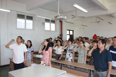 开展庆祝2020年教师节相关活动进行了安排部署。随后带领全院教职工面对国旗庄严宣誓,宣誓活动庄严神圣,教职工用铿锵有力的声音表达了自己对党的教育事业的忠诚。