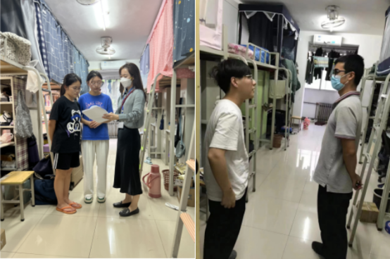 党委副书记靳永军带领全体辅导员深入返校学生宿舍与学生见面交流,向学生传达学校疫情防控的相关要求,鼓励学生积极投入新学期新生活,科学合理规划大学生活,以良好的状态开启新学期新征程。