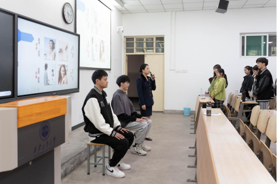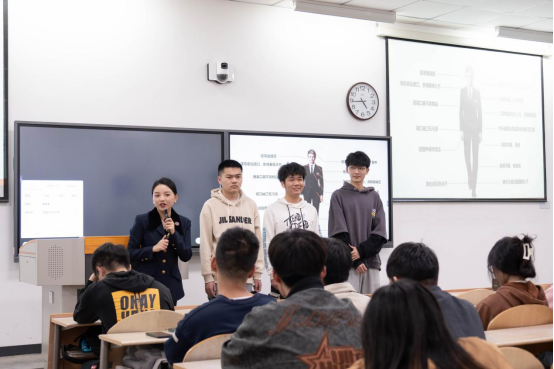 3.同时陈老师详细介绍了男生和女生在求职过程中的衣着要求和搭配法则,针对性地对学生形体、站姿、坐姿等进行指导,提出建议。