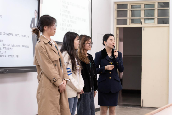 于4月13日在教2-109组织了一场主题为“礼赢职场|面面俱到”面试礼仪知识讲座,辅导员呼延晓蓉、国际礼仪培训师陈婕和20级全体学生参加此次知识讲座。