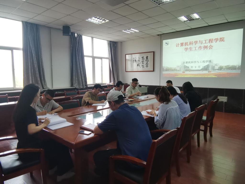 在工1-306开展学生学生工作例会,会议由党委副书记靳永军主持,全体辅导员参加。