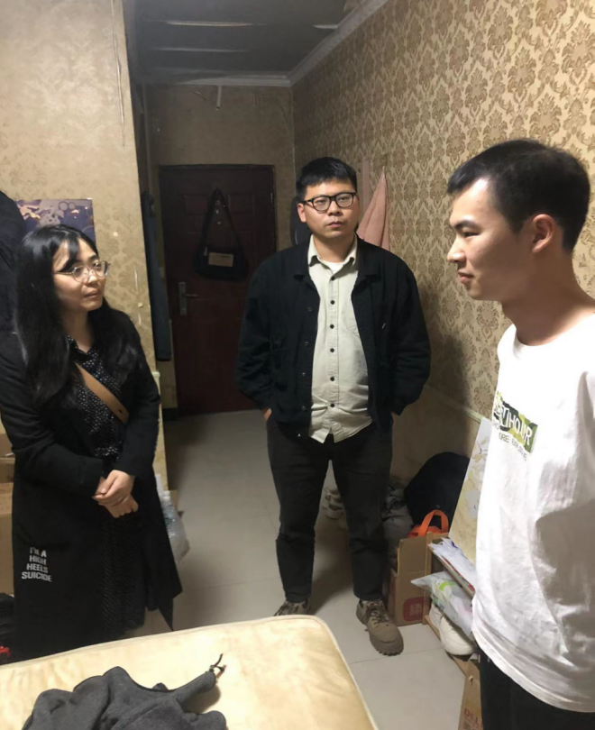 三位老师与外住同学亲切交谈,认真了解学生的日常学习、生活和思想状况,深入了解学生住宿小区的周边环境以及安全问题,同时提醒同学们切实提高防火、防电、防盗和防骗等安全意识,加强学生法治意识教育,重点关注学生的生活情况和精神面貌,希望同学们牢固树立安全防范意识,以防意外发生。
