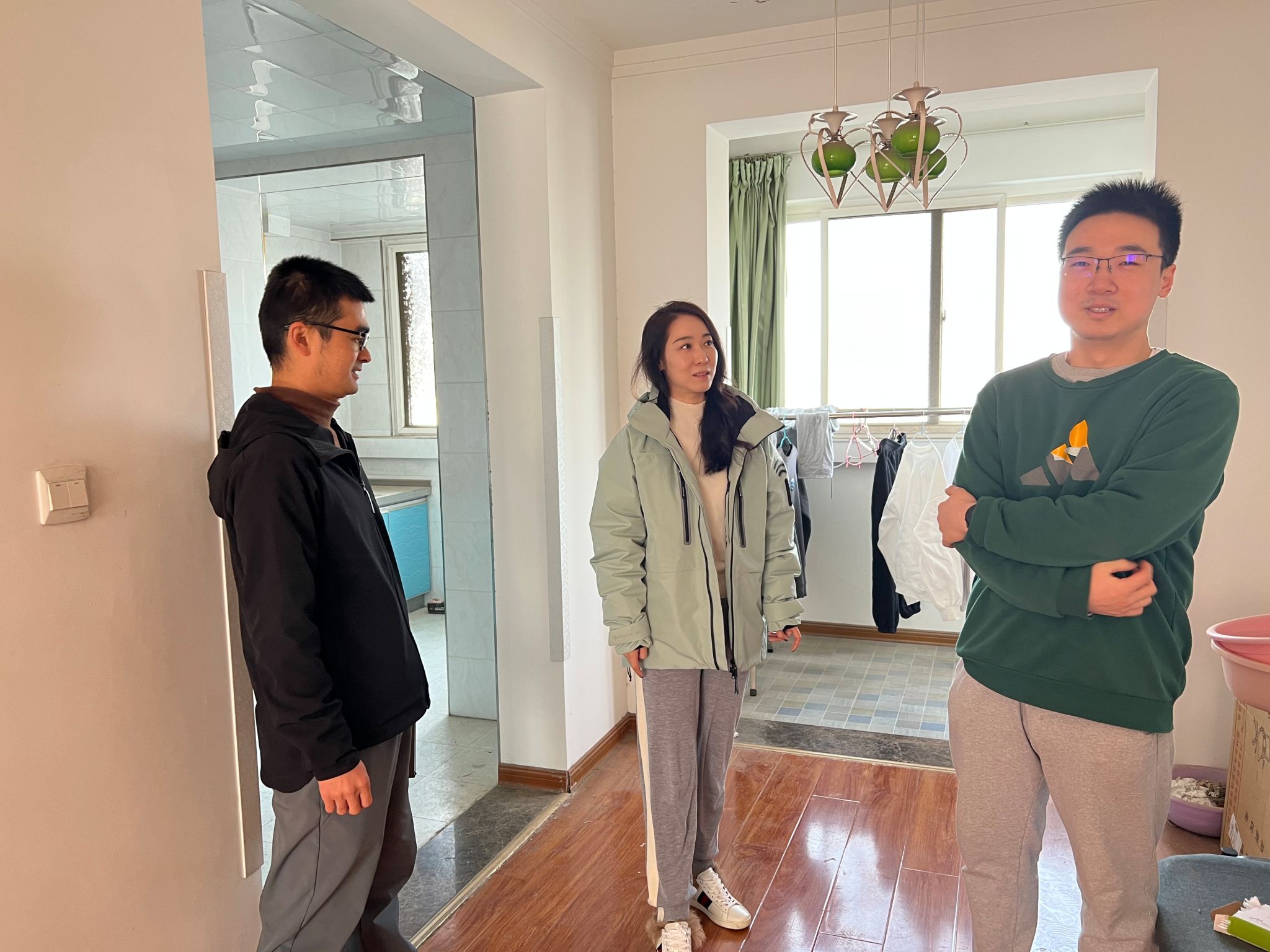 辅导员呼延晓蓉、解军强、胡凯一行走访校外住宿同学的住所。