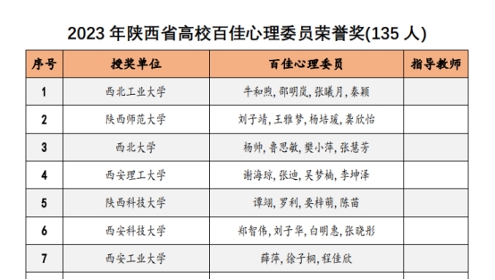 近日,陕西省高校心理素质教育研究会对2023年陕西高校心理育人相关工作进行表彰。nba在线