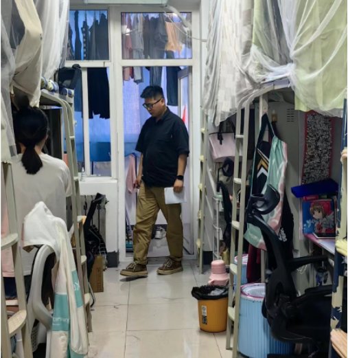 毕业班辅导员深入学生宿舍,逐一排查学生离校情况,做好统计与上报,确保24届毕业生平稳离校。