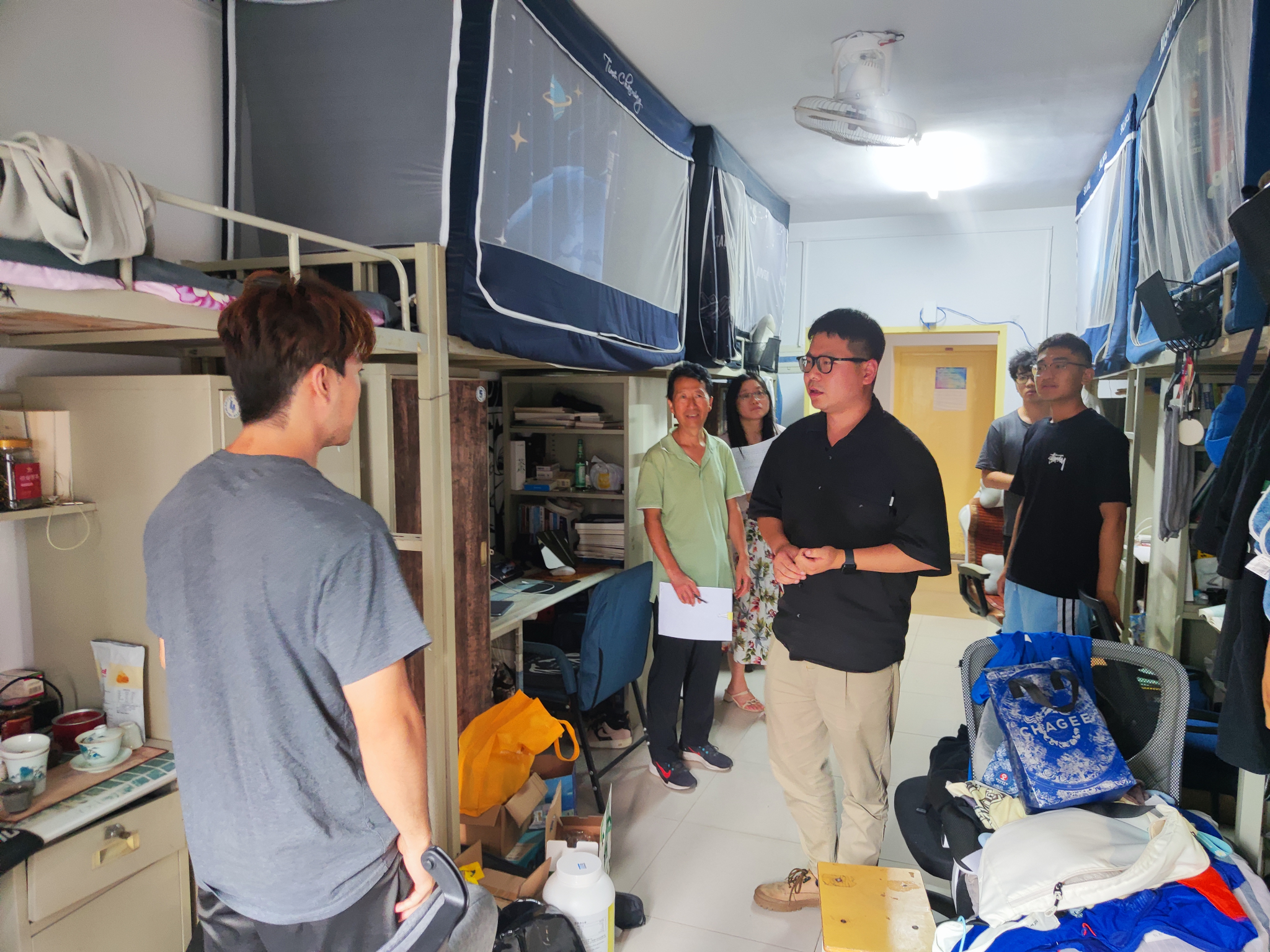 辅导员们就同学们的报道情况,宿舍安全隐患,学生个人学习、生活情况等做了解与排查,对于存在安全隐患的宿舍进行登记并要求限期整改。同时,强调要注重宿舍卫生,做到勤打扫,勤通风,养成良好的个人卫生习惯,共同营造和谐友爱的宿舍氛围。