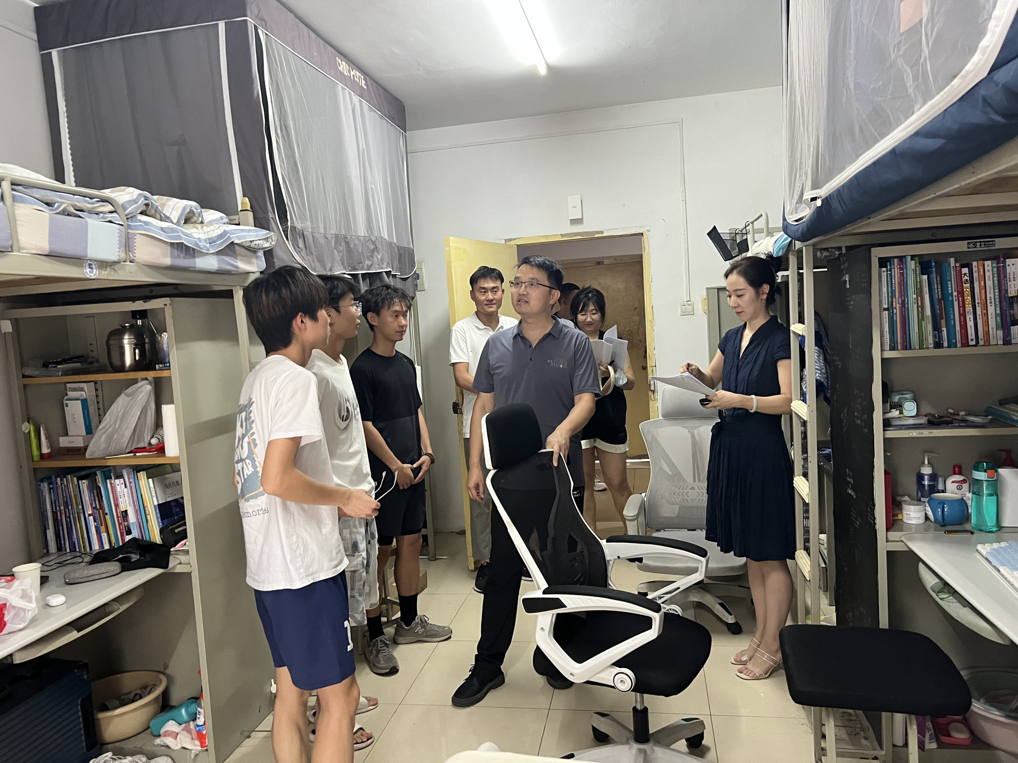 党委副书记靳永军带领各年级辅导员老师分专业深入学生宿舍进行走访。
