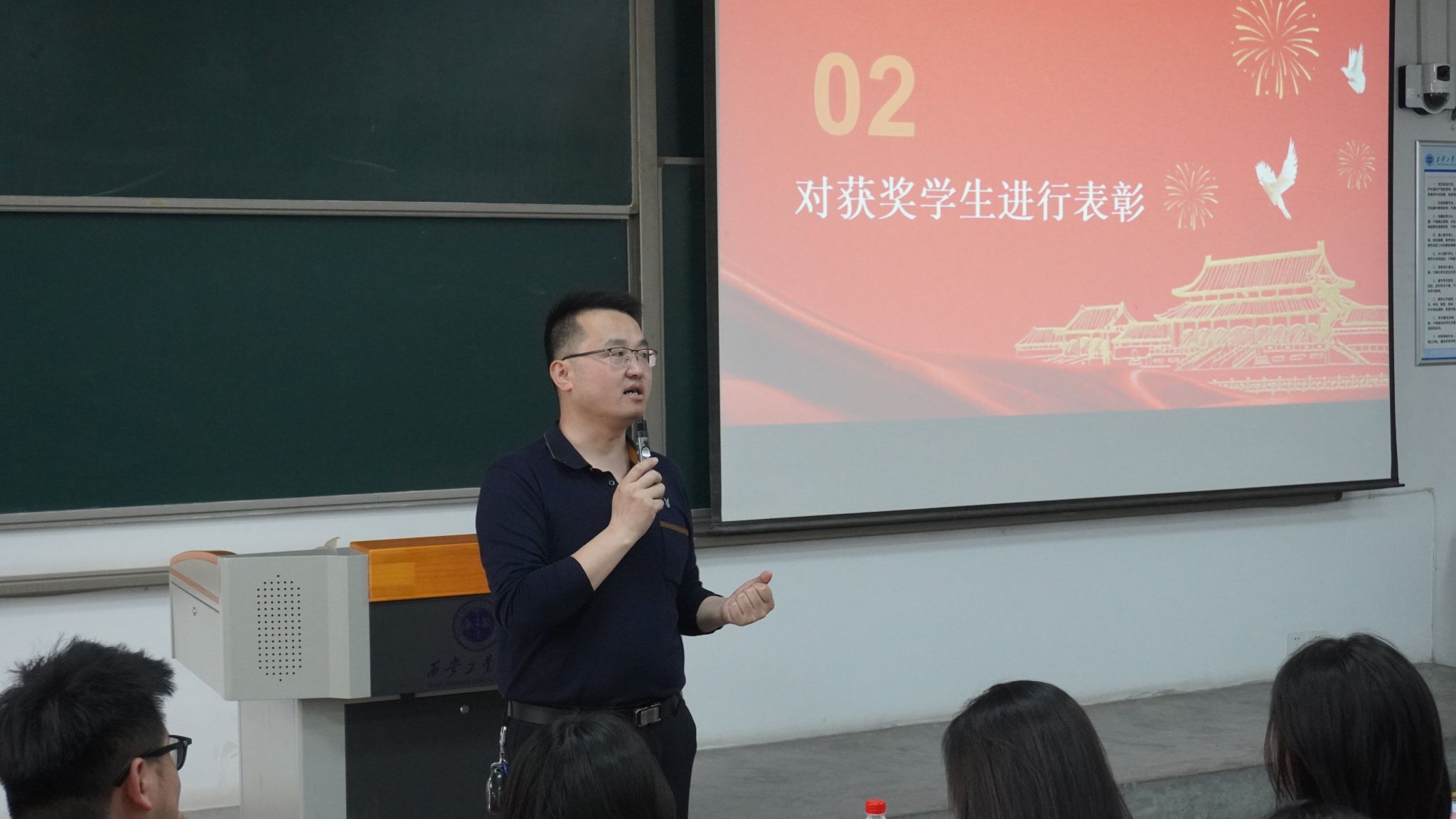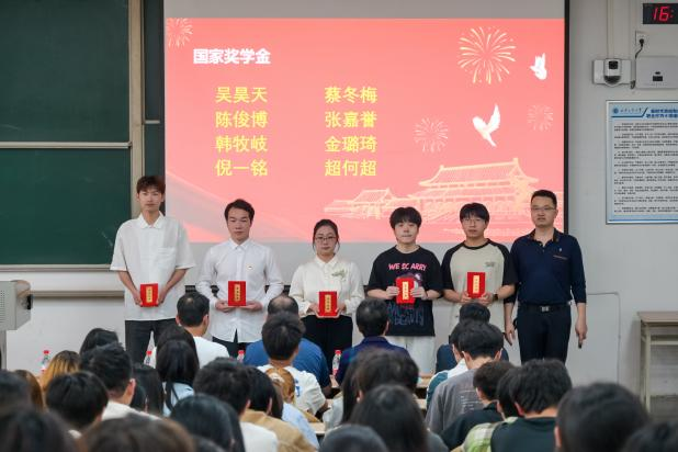 接着,大会进入颁奖环节。国家奖学金获得者、十佳大学生、三好学生、优秀学生骨干等获奖代表依次上台领奖。靳永军及辅导员们分别为获奖学生代表颁发荣誉证书,并勉励他们再接再厉,继续发挥模范带头作用。