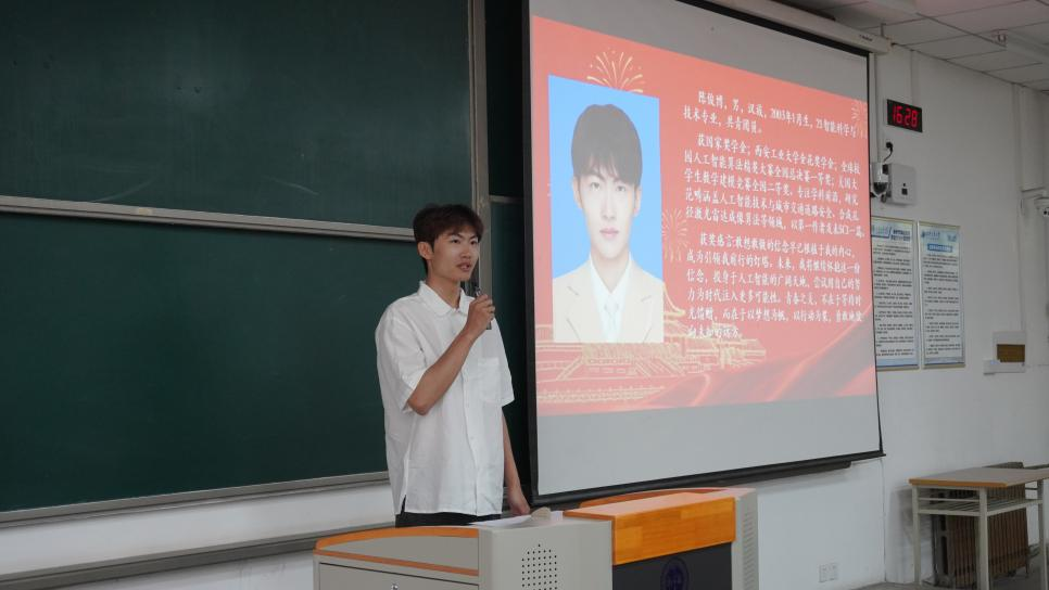 随后,陈俊博、王玥瑶、蔡冬梅三位优秀学生代表同学依次上台发言。他们结合自身经历,从学习方法、时间管理、科研实践等方面分享了心得体会,并鼓励学弟学妹们勇于探索、追求卓越,他们的优异表现赢得了全场师生的赞誉。