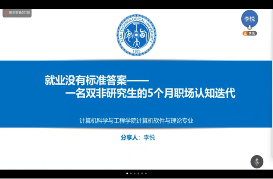 在分享会上,李悦同志结合自己的研究方向和实习经历,深入分析了当前的就业形势。他指出,当前就业市场呈现“供需错配”特点:企业亟需能快速上手的技术人才,但求职者技能与岗位需求存在断层。因此,在就业前需要对自己做一个完整的复盘,清楚自己的就业方向,要今早了解自己的就业类型,包括考公考编、国企/私企、高校就业和研究所等多种岗位,同时要密切关注行业动态,积极参加相关企业等实习,为未来进入对口领域就业做好准备。同时,他还分享了自己在实习工作以及寻找工作过程中的一些细节,帮助同学们更好的应对求职中的挑战。