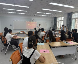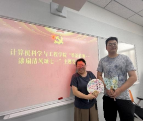 随后,在活动实践环节,非遗漆扇吴丹老师现场授课,将传统工艺与廉政文化进行深层联结,吴老师从漆扇扇骨选材到漆面髹涂的工序步骤进行详细讲解。在他的指导下,师生党员以扇面为载体以廉政格言、警句和寄予期望为主题进行创作。在制作环节,大家精心挑选着各种钟意的扇形和色彩,书写下扇面主题,再轻轻地将漆料滴入水中,用搅拌棒缓缓搅动。当漆画在水中幻化出五彩斑斓的纹路时,将扇子缓缓浸入水中,轻轻旋转,慢慢抽出,这时一把把独一无二、晕染天成的漆扇就完成了。这一把把漆扇五彩斑斓的纹路交织错落,有的细腻飘逸,有的自然粗犷,师生们都兴奋地展示自己的作品,整个现场其乐融融,欢声笑语。