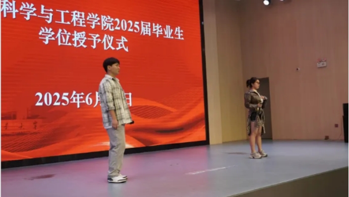 报告厅大门轻启。身着学位服的毕业生们,伴着暖场视频中跳动的青春影像,自信入场。大屏幕上,那些挑灯夜战的代码时光、项目成功的欢呼、校园生活的点滴……那些曾经习以为常的瞬间,如今都成了心中最珍贵的回忆。初入校园的青涩恍如昨日,独一无二的成长瞬间填满四季,拼凑出我们热烈昂扬的大学故事。