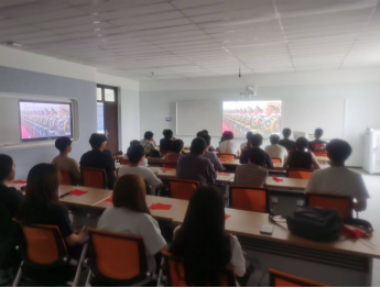 师生集中观看阅兵仪式现场直播。院党委书记杨正强表示,此次阅兵仪式不仅是一场展示国威军威的盛典,更是一堂生动而深刻的爱国主义教育课。