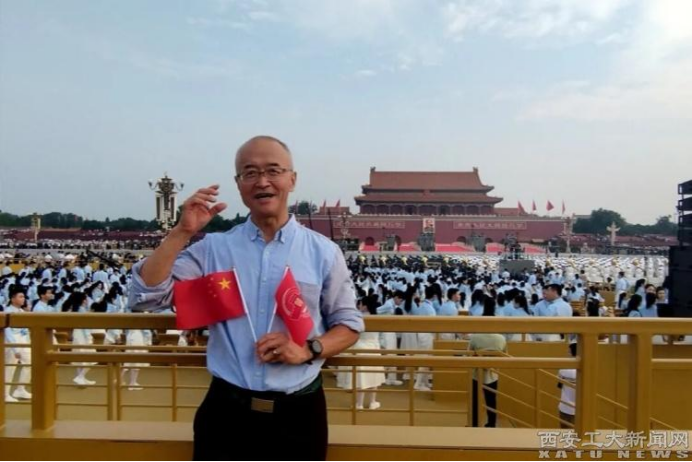 校友、中国航天科工集团航天长峰首席科学家张涛在阅兵仪式现场见证历史时刻。