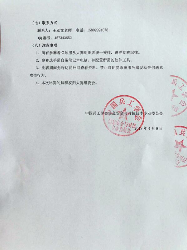 3.比赛期间允许访问外网查看资料。禁止对比赛系统服务器发动任何恶意攻击行为。